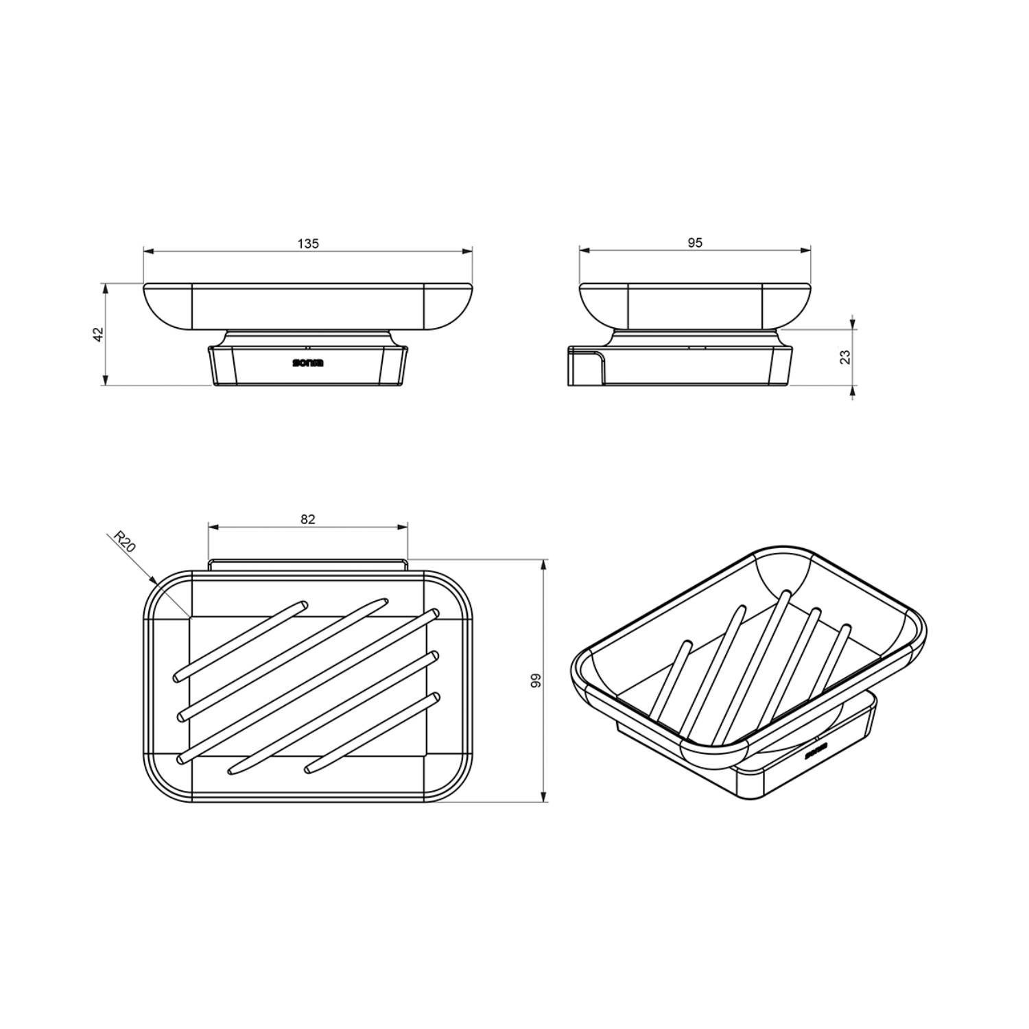 Zeephouder Sapho Zen Chrom Hangend 4.2x13.5 cm Chroom / Melkglas