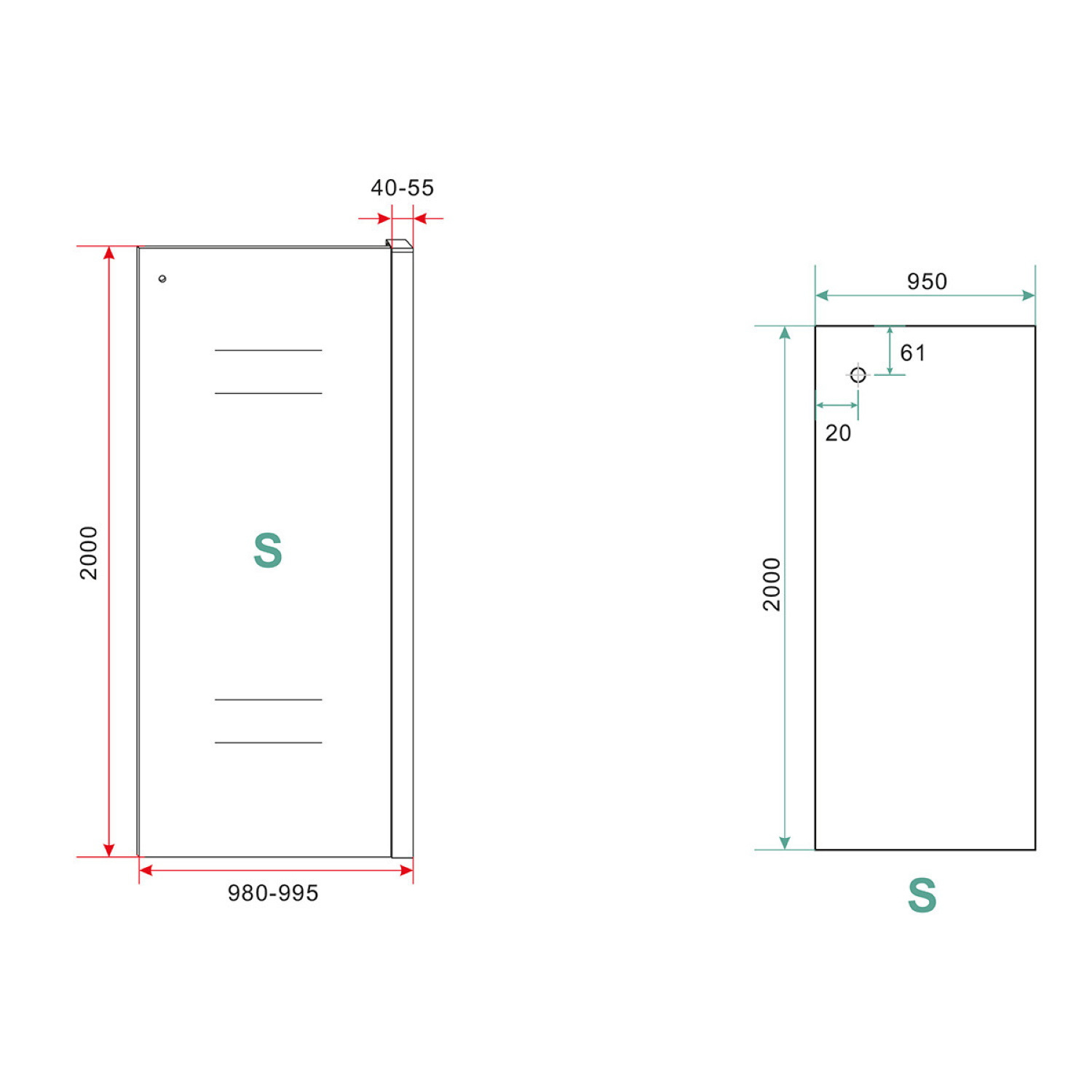 De Boss & Wessing zijwand is 100 cm breed, 200 cm hoog en heeft een glasdikte van 8 mm. De zijwand beschikt over veiligheidsglas met Nano coating. De inbouwbreedte van het glas is 98 - 99.5 cm. Het profiel is gemaakt van aluminium.