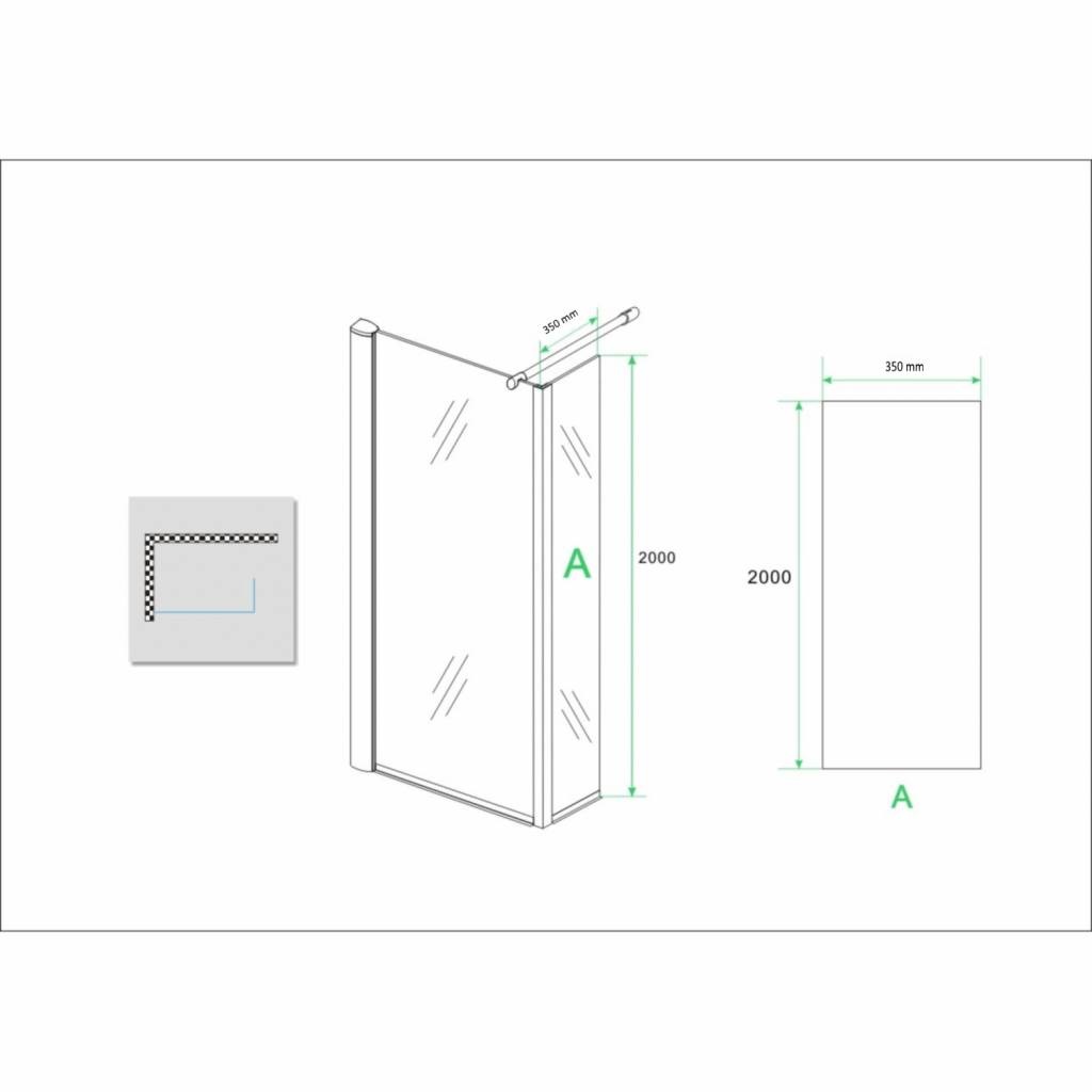 Let op! U kan de zijwand alleen op de hoek van de inloopdouche plaatsen. Niet aan de muur. De wand van de inloop douche word niet meegeleverd. Alleen het 35x200cm stuk.